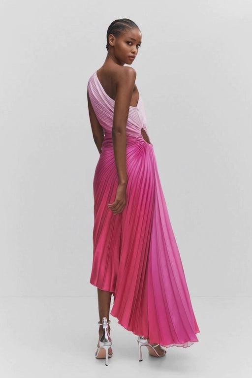 Avec sa coupe asymétrique élégante et ses plissés délicats, la robe Cris sublime la silhouette avec fluidité et légèreté. Son dégradé de rose lumineux apporte une touche moderne et solaire, parfaite pour une soirée, un événement ou une occasion spéciale.